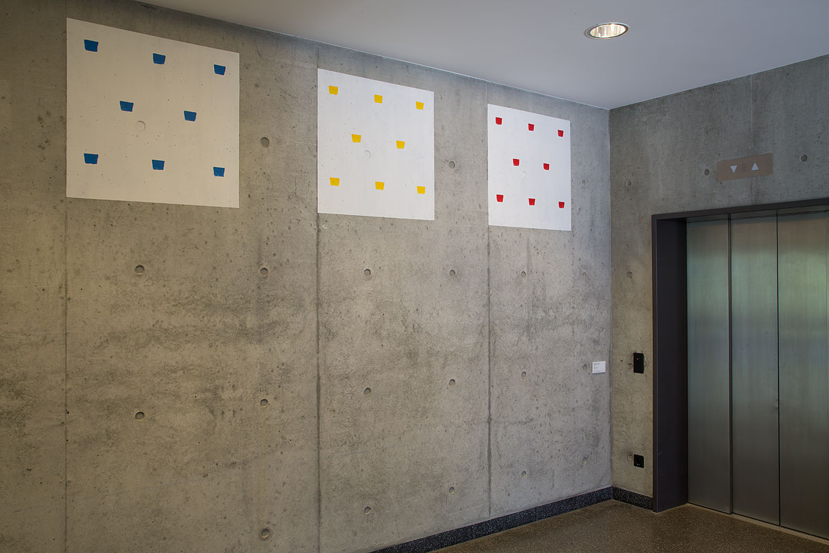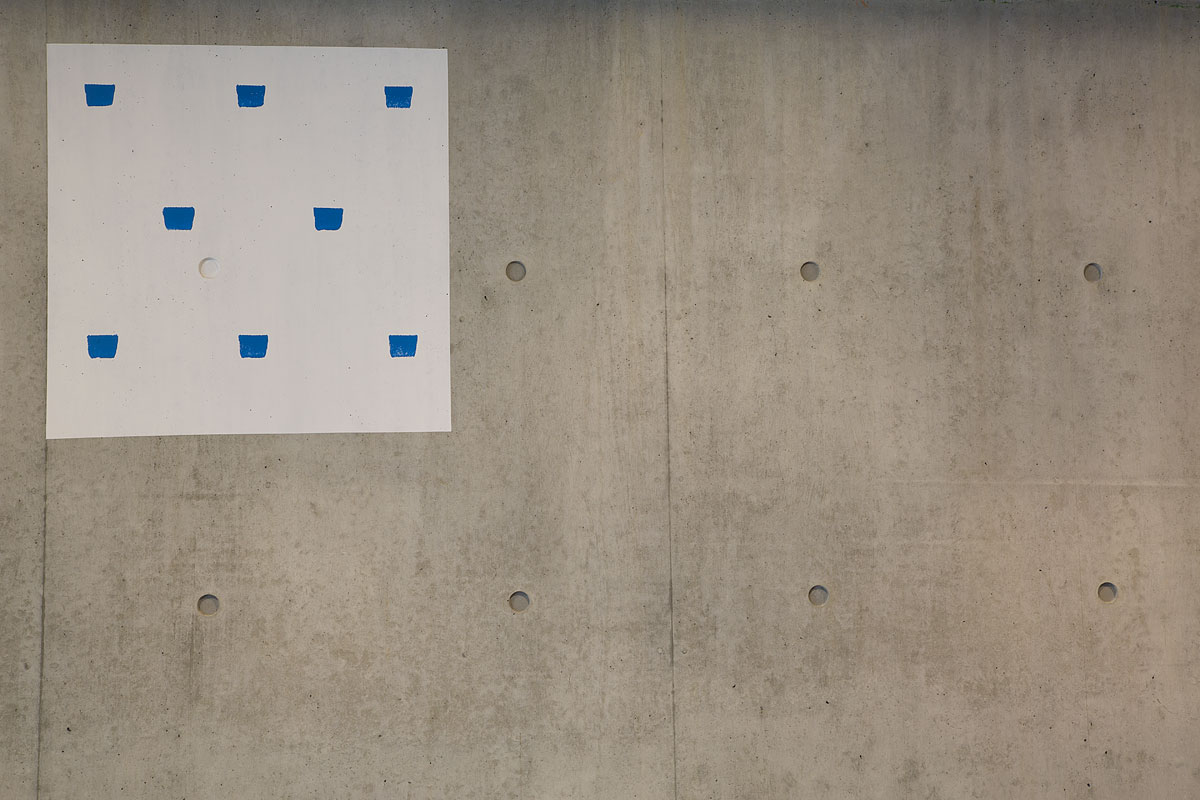Niele Toroni setzt seit 1967 Farbabstriche eines Pinsels der Grösse Nr. 50 in regelmässigen Abständen von 30 cm waagrecht gereiht und in wechselständiger Anordnung. Dabei ändert er weder Pinselbreite noch Abstände der einzelnen Pinselspuren, sondern variiert lediglich Ort, Farbe und Grösse seiner Arbeiten.