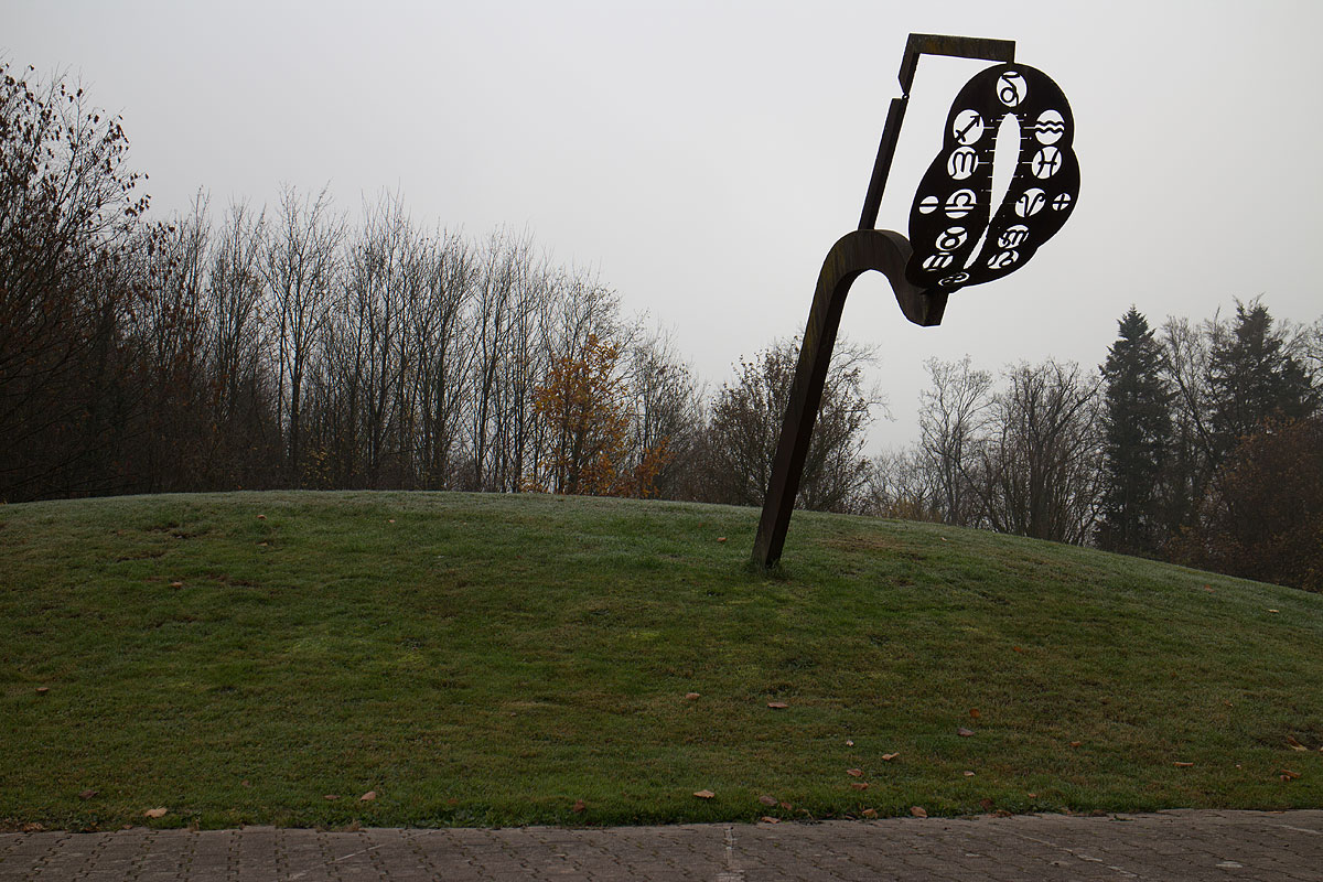 Massgebendes Zentrum der Anlage bietet die als begehbarer, leicht geneigter Platz gestaltete Horizontal-Sonnenuhr, welche «Die Zeit» symbolisiert.