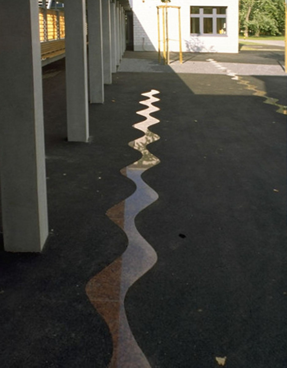 Vor vielen Jahren (zirka 1988), René Stoos (Architekt) hatte gerade den Wettbewerb gewonnen, lud er mich zu einer Ansicht und Sondierung einer eventuellen Idee für Kunst am Bau in sein Büro ein. Während er das Projekt erklärte, entstand das Konzept klar vor meinem inneren Auge und hat sich seither, trotz vermehrtem Überarbeiten, nur in kleinen Details verändert.